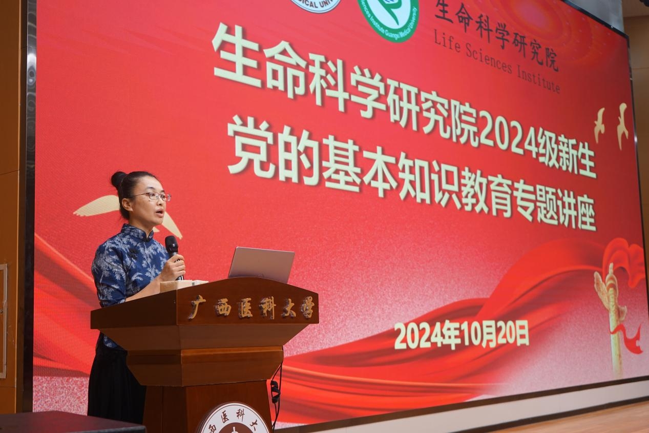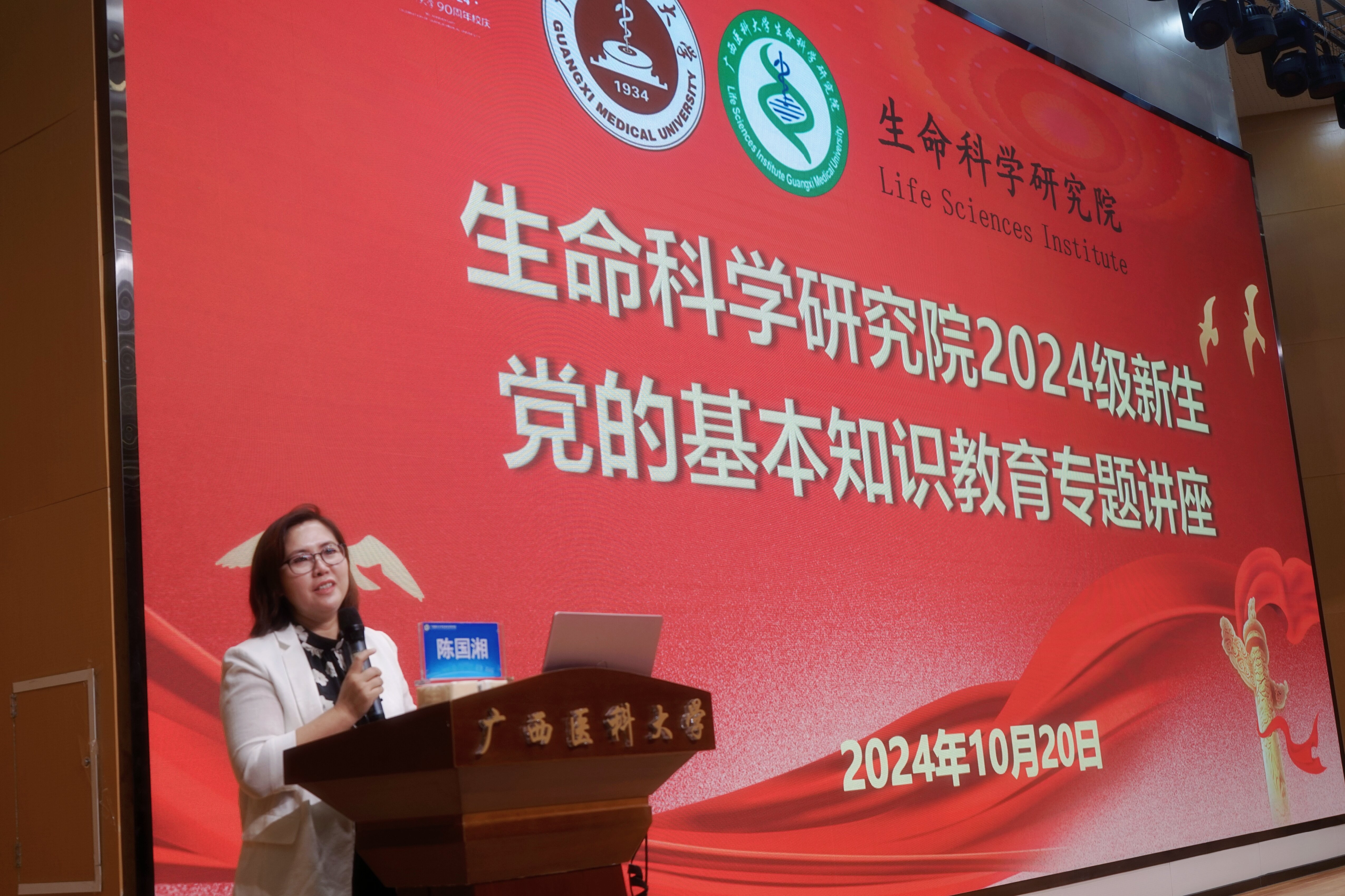 为贯彻落实《广西医科大学2024级本科新生入学教育工作方案》,教育引导青年大学生积极向党组织靠拢,10月20日晚上,英国上市公司365在武鸣校区图书馆报告厅举办2024级新生党的基本知识教育专题讲座。本次活动由生科院党委陈国湘书记、专职组织员农君老师担任主讲,辅导员和2024级全体学生参加,副处级组织员满健平老师主持。
