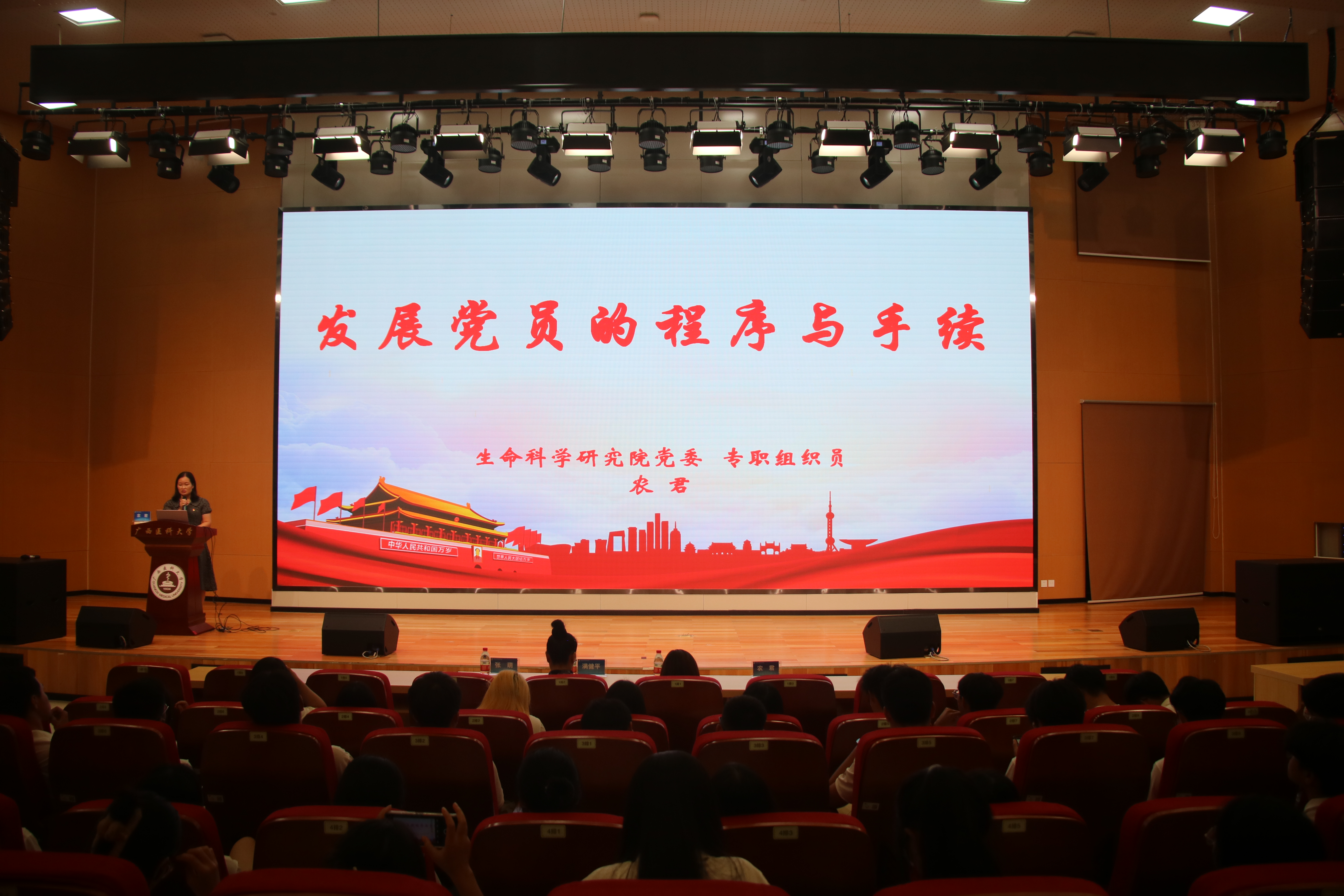 陈国湘书记做了题为《青春向党、不负韶华、心有大我、至诚报国》的专题讲座。她从“青春、梦想、奋斗”三个方面带领同学们回顾了中国共产党的百年辉煌历史并激励当代青年学生为实现中国梦而团结奋斗。结合学院和专业特色,陈书记对新生提出了三点期望:一是要听党话、跟党走,树立远大理想坚定崇高信念,做坚实的筑梦人;二是要以青春梦助力中国梦,铸牢中华民族共同体意识,做坚定的追梦人;三是要锤炼扎实学识,弘扬伟大的科学家精神,做坚毅的圆梦人。接着,组织员农君老师详细讲解发展党员程序及入党申请书的撰写要求,鼓励同学们积极向党组织靠拢,早日实现自己的理想抱负。