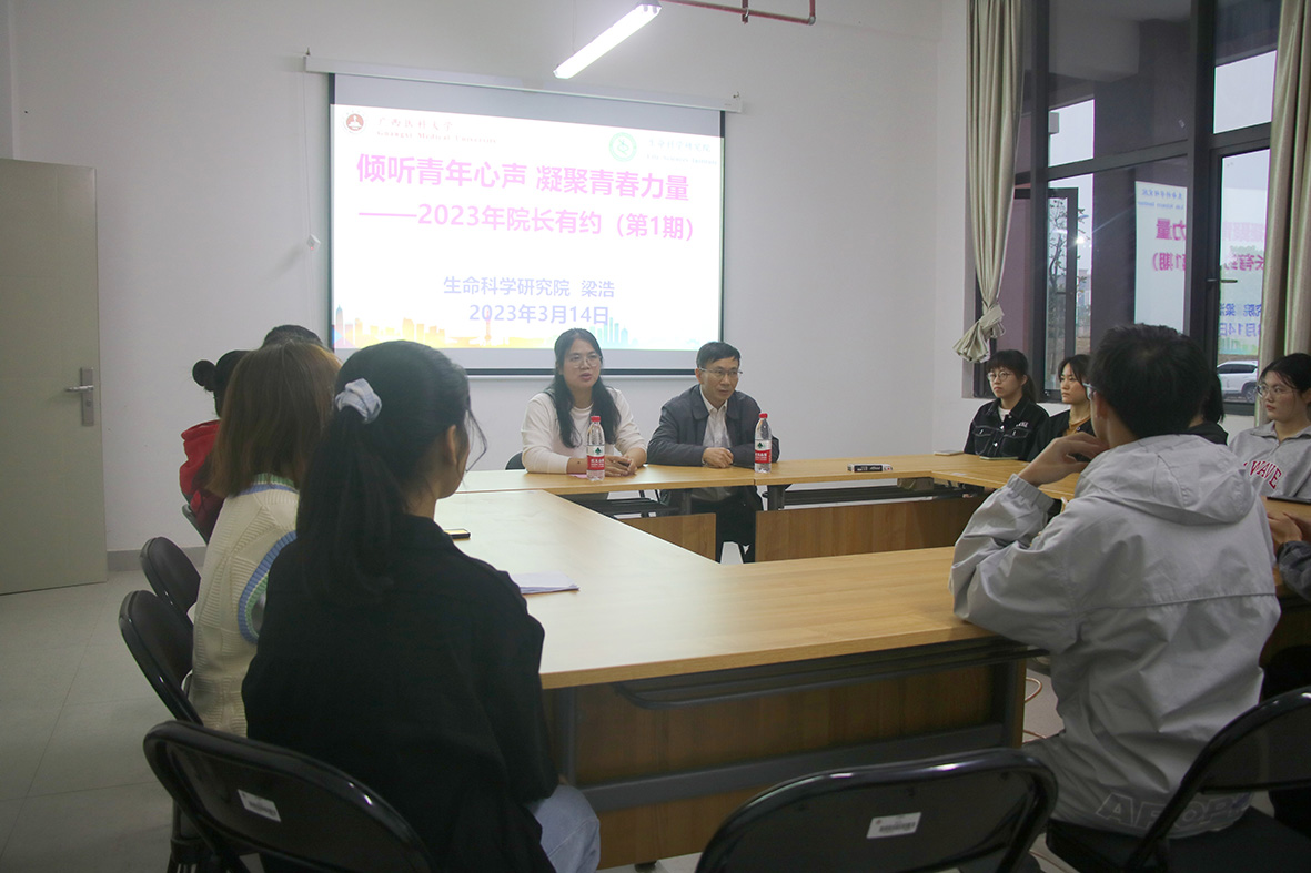 3月14日晚,英国上市公司3652023年“院长有约”(第一期)交流活动在武鸣校区A3栋122教室举行,生科院学工办主任黄海纯、各班级学生代表三十余人参加座谈交流,倾听同学们的心声,共话青年人才成长,共促生科院高质量发展。
