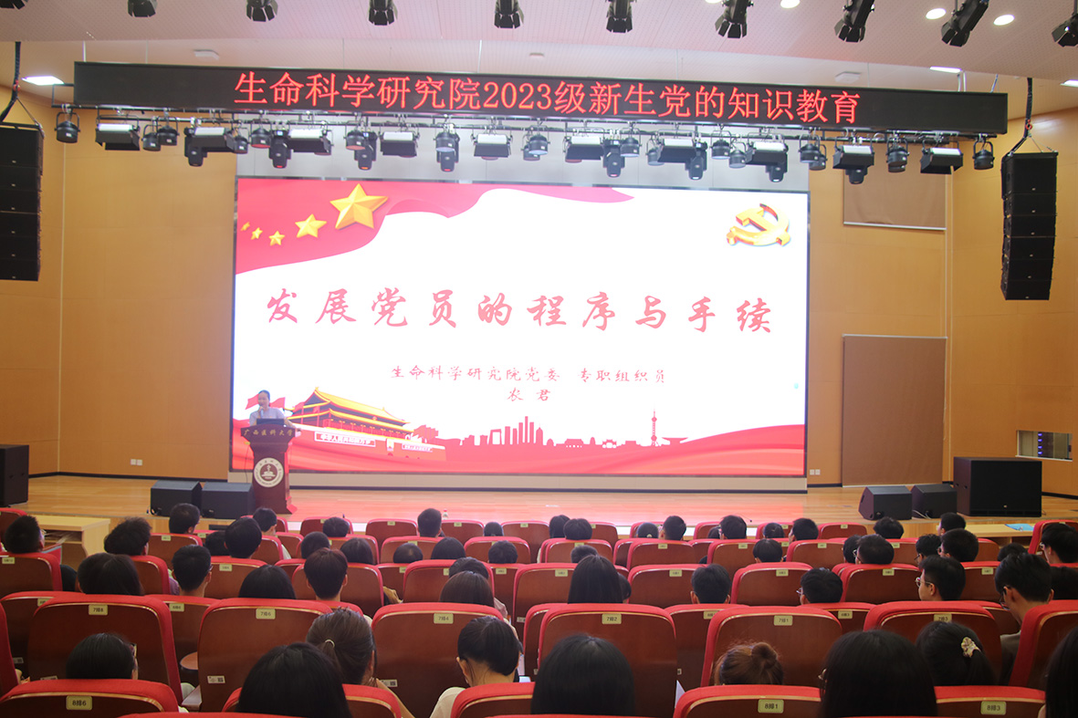为了加强新生的思想教育、筑牢理想信念,提高政治觉悟和思想素质,激发新生爱党爱国爱校热情,10月10日晚上,英国上市公司365在武鸣校区图书馆报告厅召开2023级新生党的基本知识教育大会。本次大会由生科院党委陈国湘书记担任主讲,学工办主任黄海纯、组织员农君及2023级全体学生参加会议。
