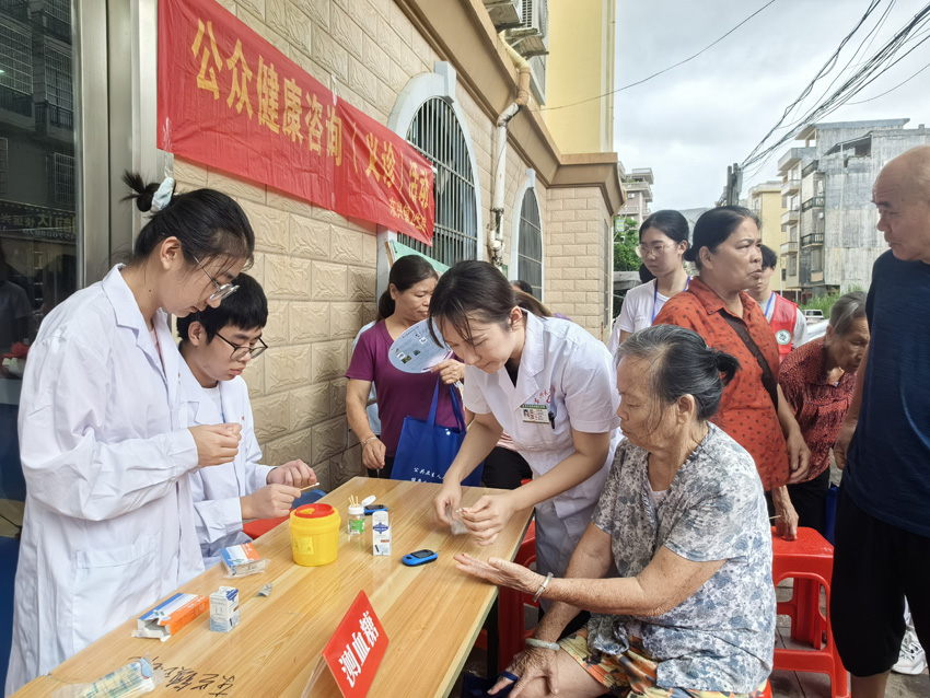 7月8日-9日,实践团参观了竹山村1号界碑、东兴市侨批馆、中越人民革命烈士纪念碑等红色教育基地,开展了民族团结工作的调研和铸牢中华民族共同体意识宣传教育。7月10日上午,实践团到东兴镇卫生院围绕老年慢性病、“鼻咽癌-地贫-艾滋”区域高发疾病等开展爱心义诊及健康宣教活动,到深沟社区开展“家庭常见医用电子设备使用方法”的科普宣讲,为当地群众普及日常健康保健知识。