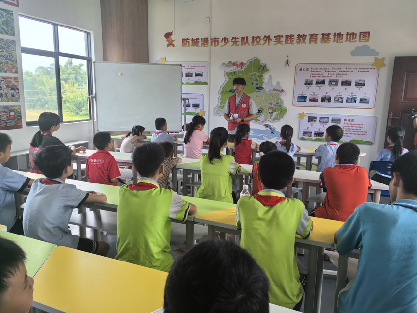 7月11日,实践团到防城港市少先队校外劳动实践教育基地开展“党带团、团带队”的共建活动,以案例讲解、情景剧等方式对小学生开展防溺水、防诈骗、防火灾以及防校园欺凌教育,增强小学生的法治意识和自护意识。