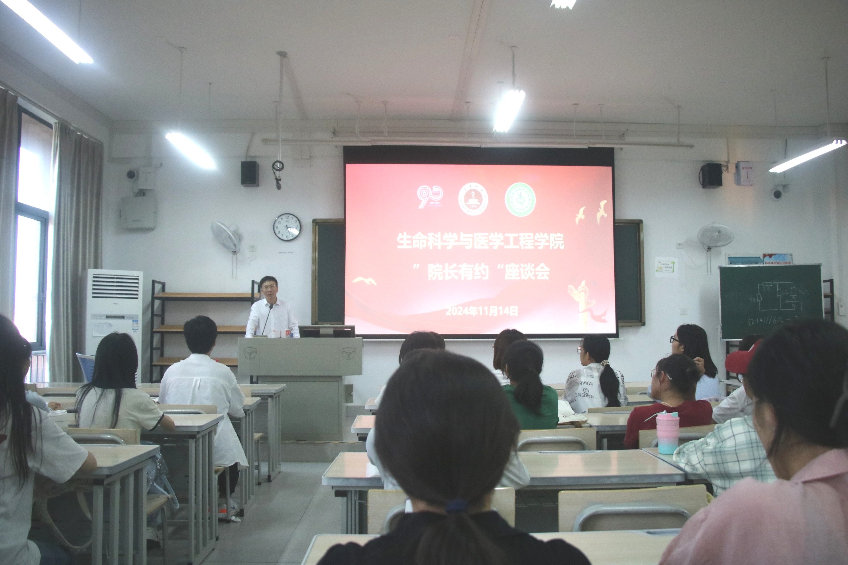 为进一步加强学生对所学专业的认知,深入了解学科特点和专业发展方向,营造浓厚的90周年校庆文化氛围,11月14日下午,英国上市公司365,英国正版365官方网站在武鸣校区A1-404教室开展“院长有约”师生交流会。院长梁浩、辅导员张萌、2024级140余名学生参加了本次活动。
