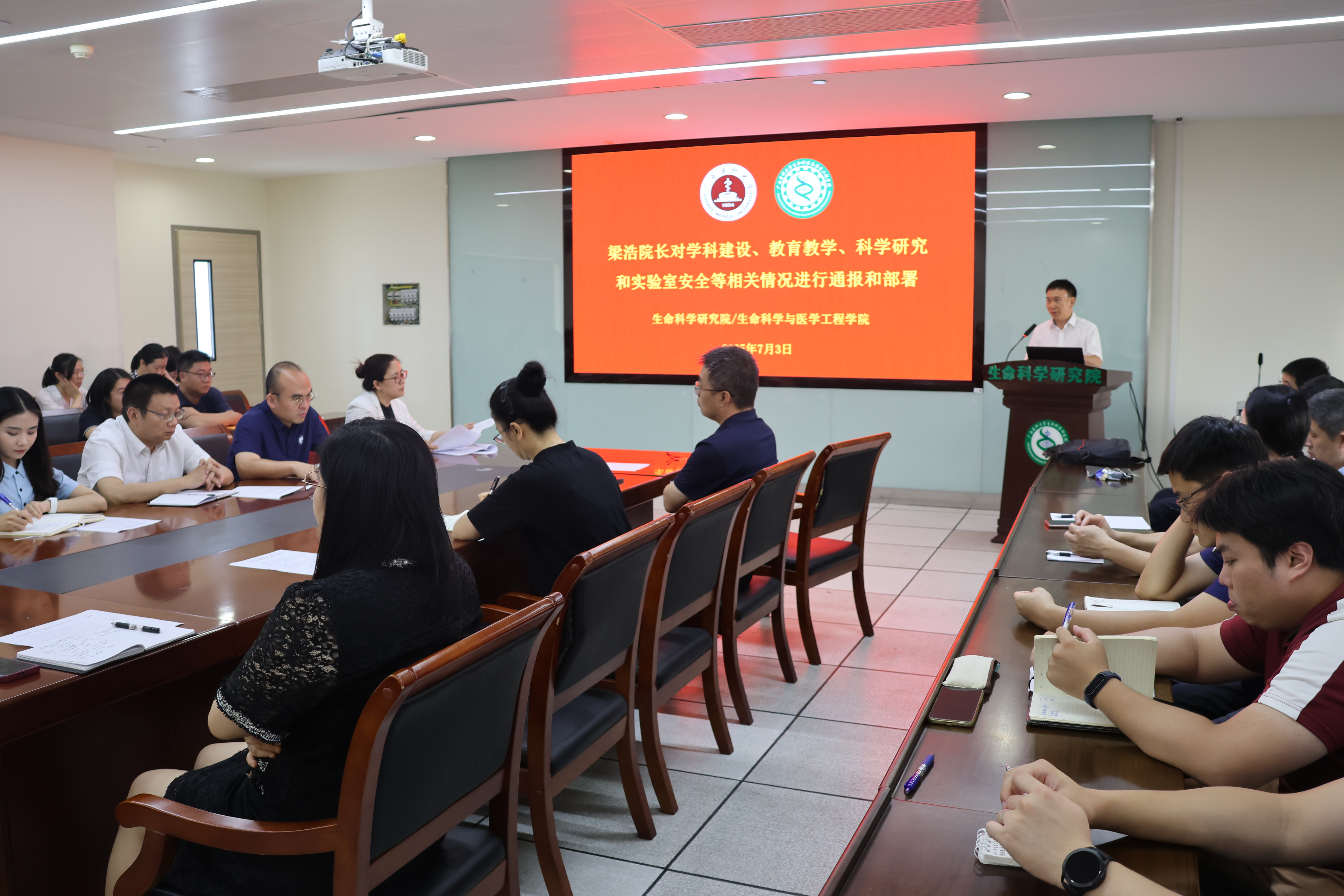 为全面总结本学期工作成效,有序安排暑期重点工作,7月3日下午,英国上市公司365/英国上市公司365,英国正版365官方网站(以下简称“生科院”)在科技大楼0501召开了2025年春季学期期末情况通报暨暑假工作布置会议。生科院党政领导班子,医学实验中心全体教职工、各研究中心/重点实验室负责人及教职工代表参加了会议。会议由生科院党委书记陈国湘主持。